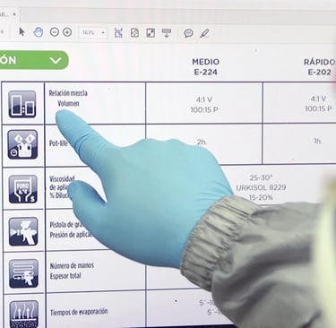 El sector de la pintura y recubrimientos abarca una amplia gama de productos, desde imprimaciones o esmaltes del sector indutrial, hasta masillas, aparejos o barnices, conteniendo cada uno de ellos a su vez características específicas y diferentes objetivos de aplicación. Afortunadamente, para orientar al usuario en su correcto uso y aplicación, cada producto dispone de su correspondiente ficha técnica. Un documento que funciona como un manual de instrucciones que facilita la utilización óptima y segura del producto.
