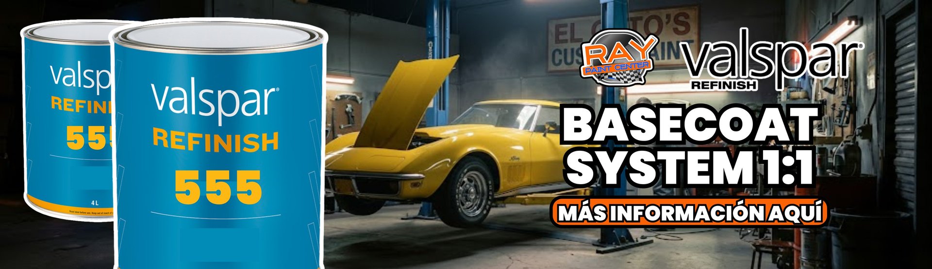 Los sistemas basecoat de Valspar Sistema 555 utiliza una proporción de mezcla de 1:1 con reductores específicos por volumen, en el caso de Valspar Sistema 999 utiliza una proporción de mezcla de 2:1 con reductores específicos por volumen. Sin embargo, siempre recomendamos verificar la Ficha Técnica (TDS) específica de cada serie antes de la aplicación.